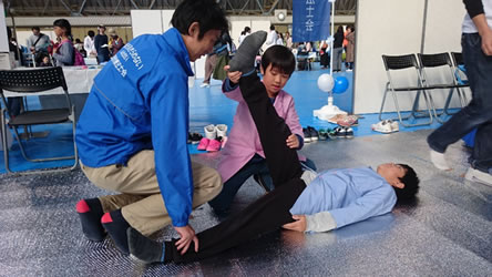 滋賀県理学療法士会は、足腰の強さのチェックを家族でチャレンジをしていただき、子供~高齢者まで笑顔で楽しみながら取り組んでおられました。多数の幅広い年齢層の方に参画をしていただけました。